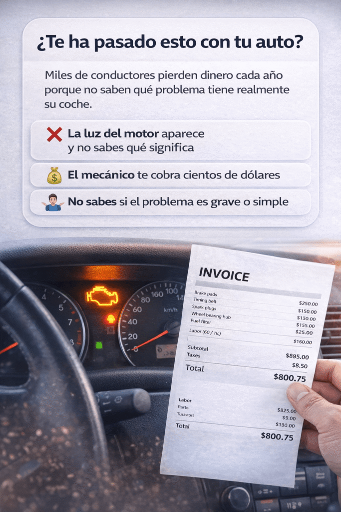 Te ahorra dinero y evita gastos innecesarios. Lo conecté en minutos y al instante pude ver lo que pasaba con mi auto. Comprar tus luces OEM o tus piezas y luego ir al taller con las piezas me ha parecido ideal.