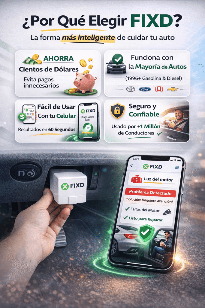 Antes pagaba una inspección solo para descubrir lo básico. Con FIXD obtuve la respuesta en minutos. Me dio el código, la explicación y el nivel de gravedad. Ahora puedo decidir con calma si lo reparo yo o lo llevo al taller.